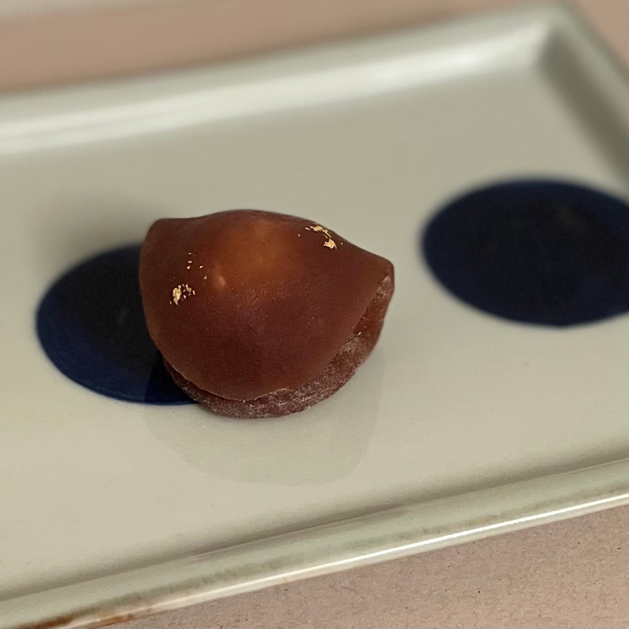 秋の雨空にしっとりと浮かぶ月を模りました。八重山産の黒糖ときび砂糖を