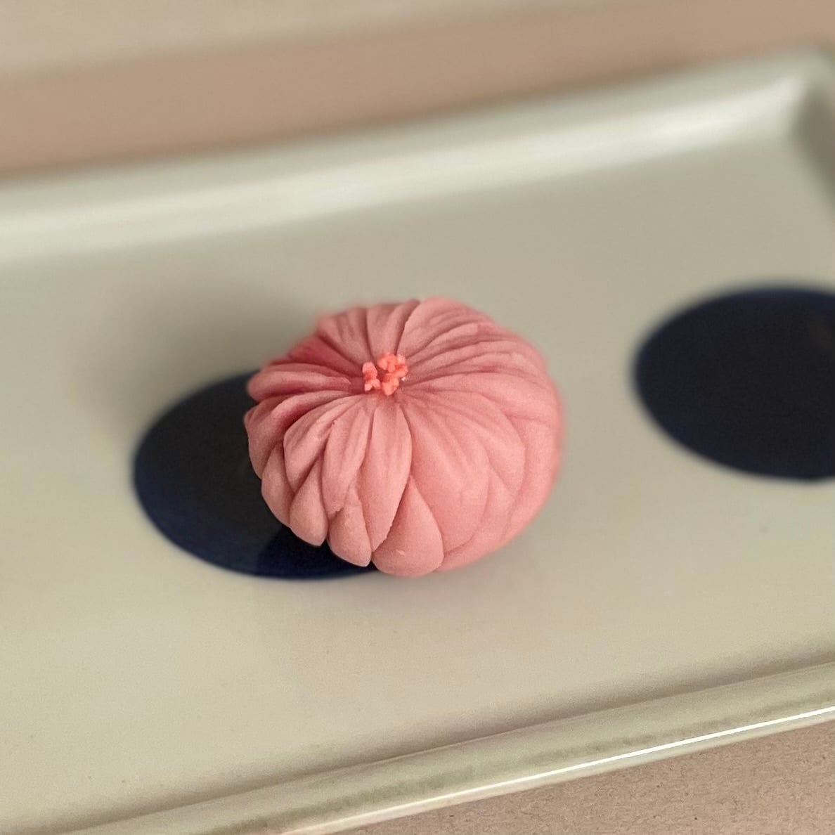 ふくよかな大輪の紅菊の花を模した練切です。