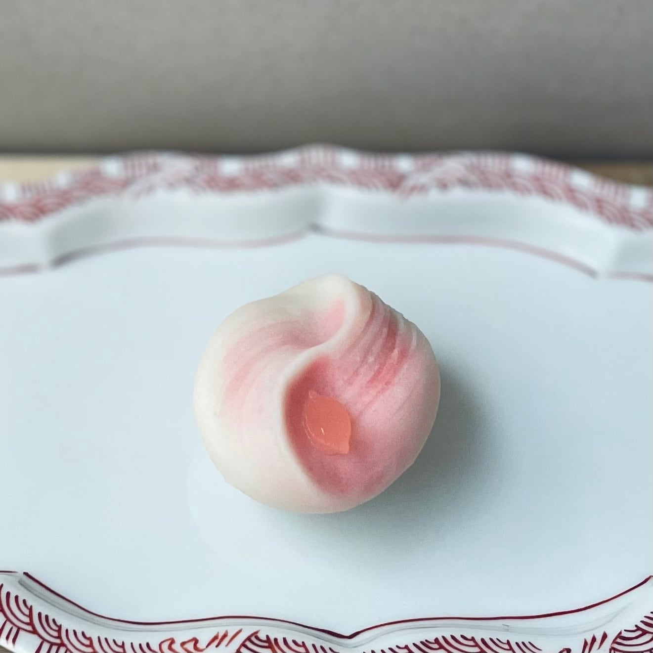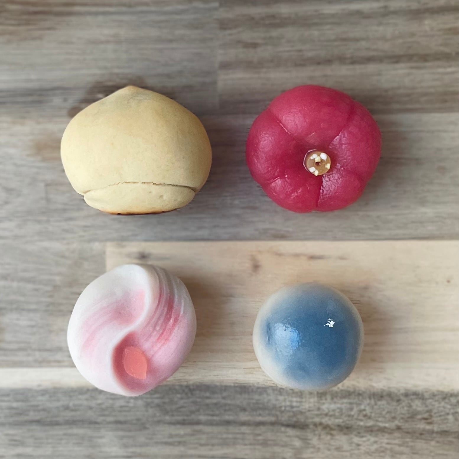 白並餡に小麦粉を合わせて蒸しあげた生地「こなし」で、ラムレーズンとチェダーチーズを包みました。