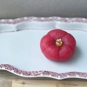 カラメリゼしたりんごを練り込んださつま芋餡を、姫椿(さざんか)の形のむっちりとした外郎(ういろう)生地で包みました。