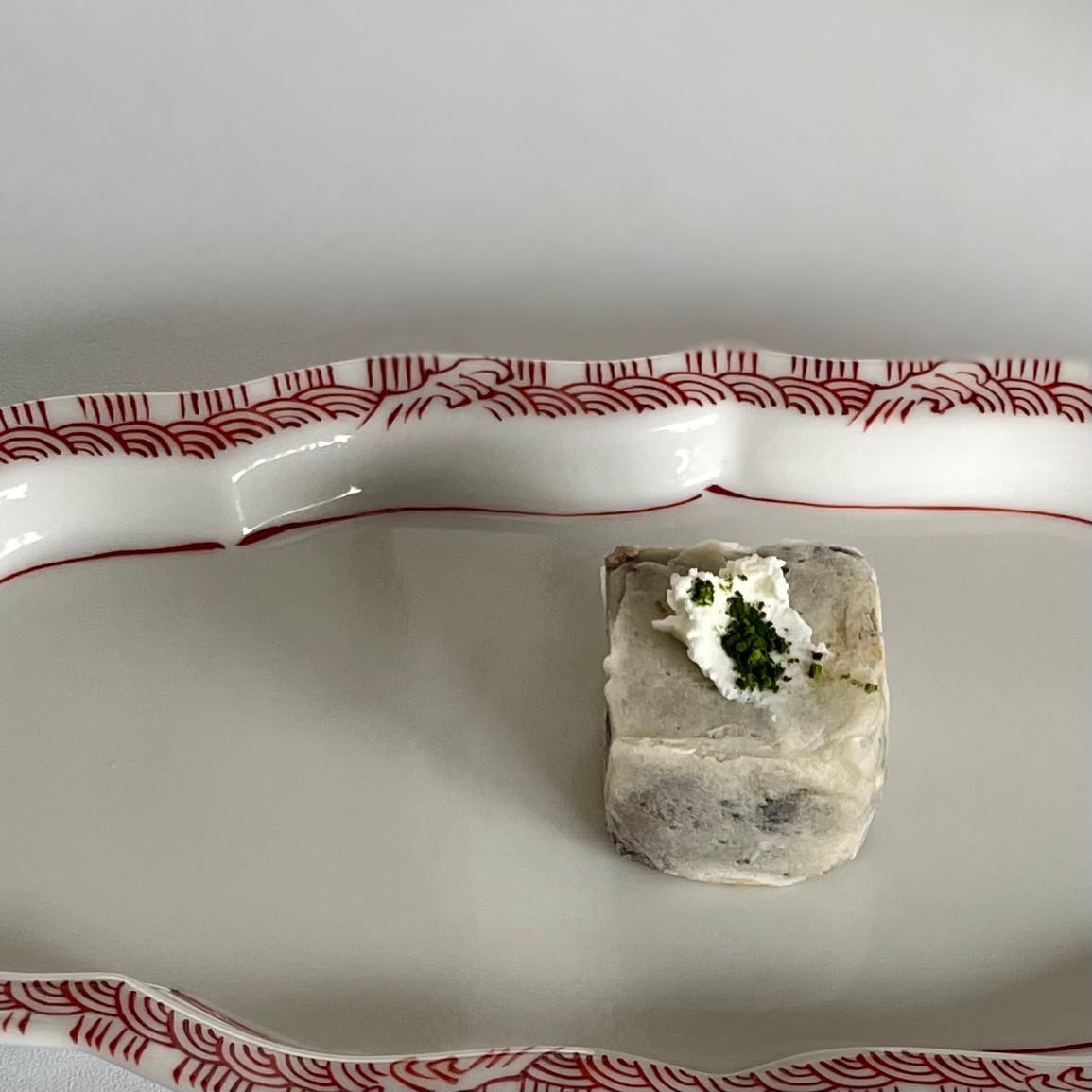 クリームチーズと抹茶で雪と芽吹きを添えました。